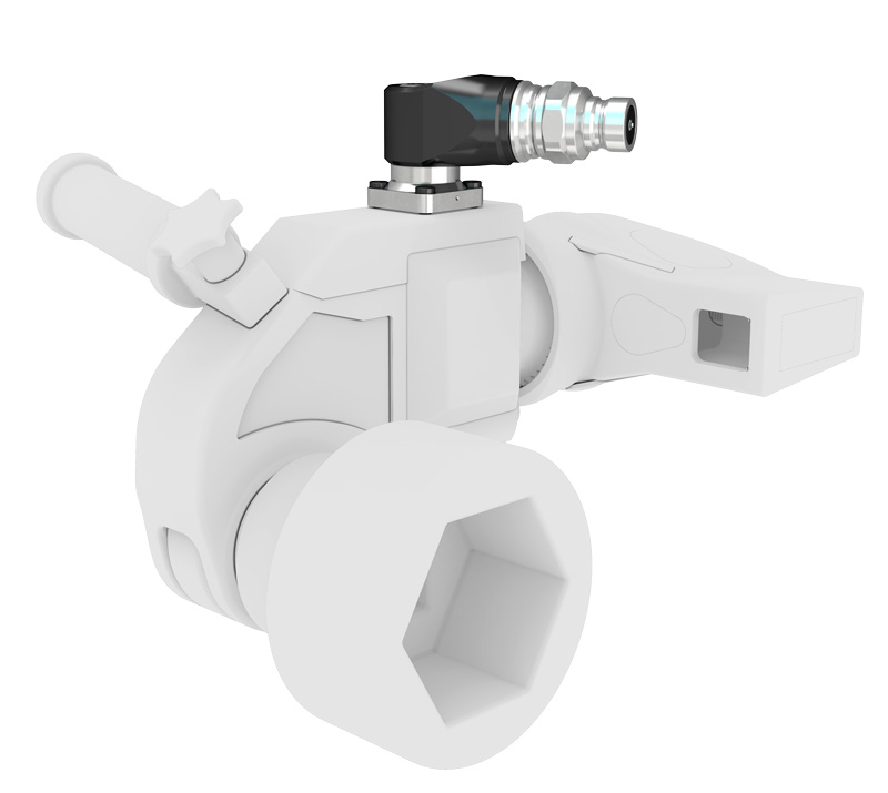 Handelen kan integreres med den hydrauliske momentnøgle, så begge hydraulikslanger kan forbindes med én kobling. Tilslutningens 360° rotationsevne giver en høj grad af manøvredygtighed og ergonomi. CEJN kan levere specialdesignede tilslutninger efter specifikationer eller simple koaksiale lynkoblinger, der integreres af producenten.