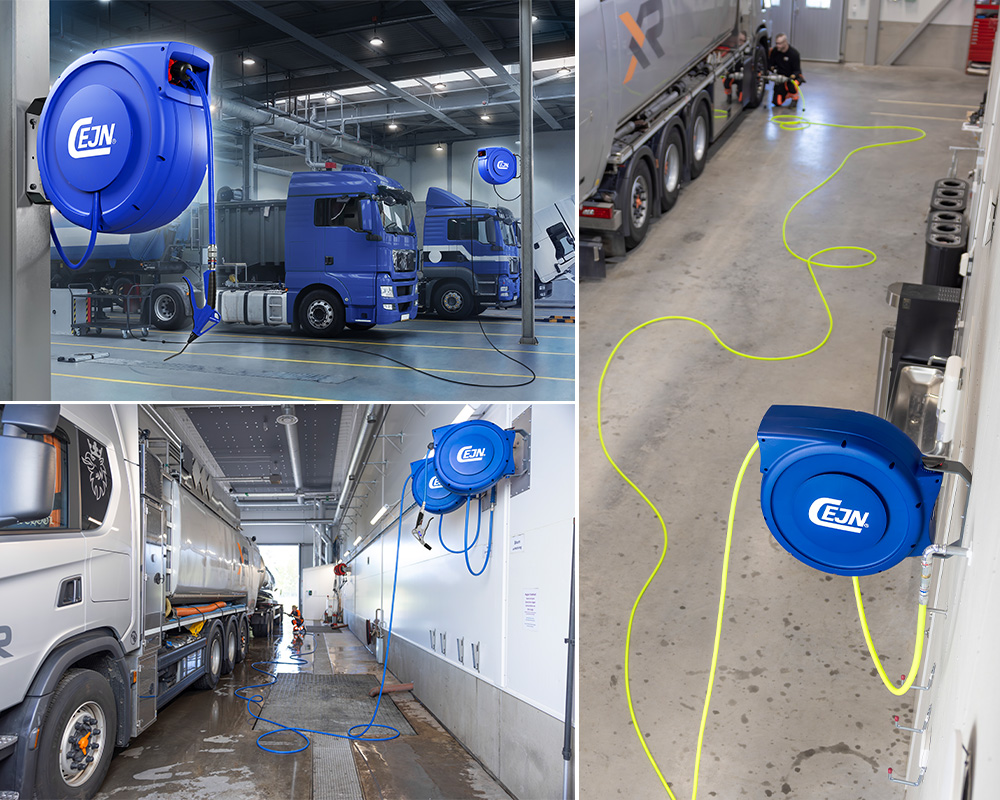 CEJN SafetyReels er et sortiment af førsteklasses slangeoprullere og kabeloprullere. Hver opruller er designet til en specifik anvendelse, men de deler mange af de samme unikke funktioner. I vores brede sortiment af SafetyReel oprullere finder du varianter, der passer til en række forskellige medier: slangeoprullere til trykluft, slangeoprullere til væske/vand, slangeoprullere til åndedrætsluft og elektriske kabeloprullere.