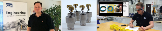 Alles wird digital, und die Umstellung erfolgt immer schneller. Für uns bei der CEJN AB als Hersteller von Schnellverschlusskupplungen ist es wichtig, dass wir technologisch immer an vorderster Front stehen. Intelligente Erfindungen spielen dabei eine bedeutende Rolle, weil immer mehr Unternehmen nach Möglichkeiten suchen, ihre Produktivität und Effizienz zu verbessern und so ihr Wachstum zu fördern. Wir arbeiten bei der CEJN AB an mehreren Forschungsprojekten. Eines davon beinhaltet die sog. „erweiterte Realität“ (engl. Augmented Reality, AR). Können AR-Brillen bei der Schulung in der Zukunft eine Hilfe sein? Unser Produktionsingenieur Filip Palmkvist ist optimistisch: „Wir sehen uns diese Möglichkeit ganz genau an.“
