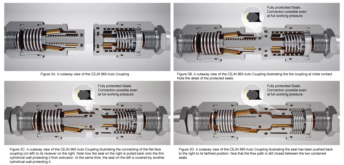 The CEJN Series 965 Auto Coupling protects the internal seals from extrusion so the connection can be made under pressure with no damage to the coupling. Its well-engineered, robust design provides the user with many more possible options on how to engineer their process(es) for greater savings and lower maintenance costs.