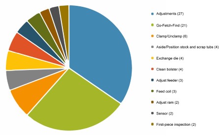 Figure 1: Identifying pockets of time is the first step toward reducing die changeover time. This chart shows pockets of time for a 300-ton coil-fed press.