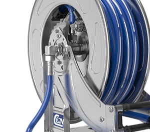 OpenReel stainless steel hose reels, designed for water or compressed air, add a new level of safety, efficiency, and ergonomics to your workplace. They are especially suitable for washdown operations and harsh environments. Keeping hoses organised and away from the ground will increase productivity and safety.