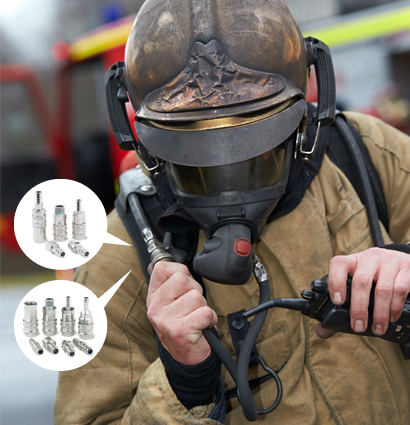 - Acoplamientos y mangueras para aplicaciones de aire respirable, certificados, para una respiración segura en condiciones difíciles
