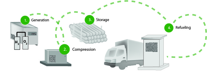 Attrezzature sicure, efficienti ed affidabili sono una necessità per garantire il buon funzionamento dell’intera filiera dell'idrogeno. Dalla generazione e compressione allo stoccaggio e al rifornimento. CEJN offre una varietà di soluzioni di connessione rapida per agevolare le diverse fasi della catena di approvvigionamento.