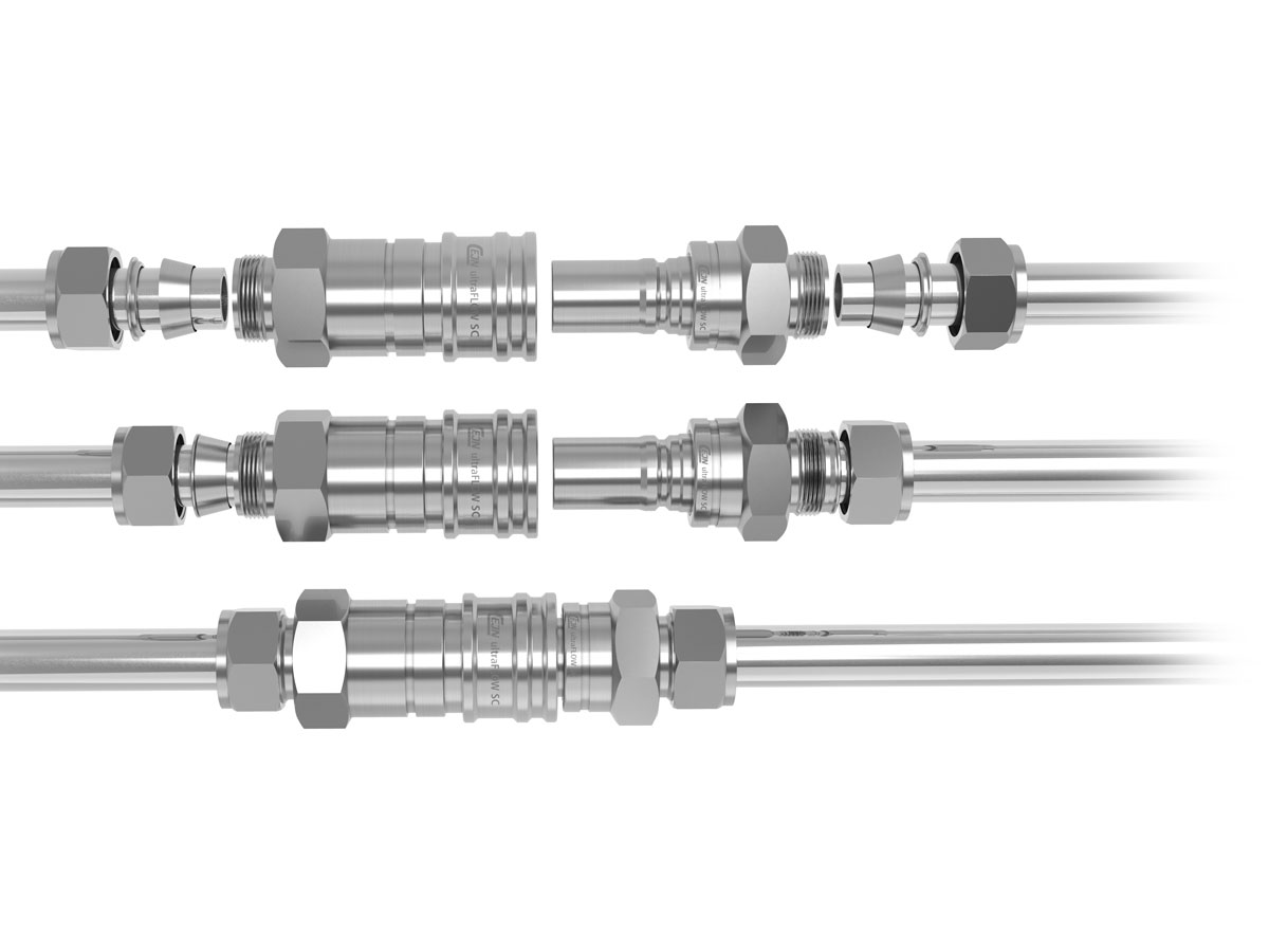Specialmente per l'industria dei semiconduttori, CEJN ha progettato una variante speciale dell'attacco rapido ultraFLOW che include raccordi a doppia ghiera. Questa connessione è stata realizzata per soddisfare le esigenze richieste nella produzione di semiconduttori, tra le altre applicazioni industriali. I raccordi per tubi a doppia ghiera assicurano una disconnessione rapida, sicura e senza fuoriuscite di diverse parti del sistema, come tubi semirigidi e flessibili.