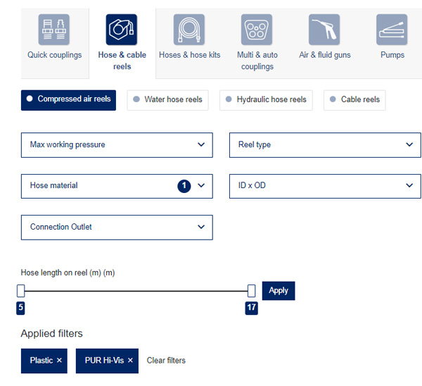 I filtri selezionati condurranno alla pagina prodotti dove è possibile trovare l'elenco degli articoli e poter scaricare disegni, vedere i dettagli dell'articolo e molto altro ancora.