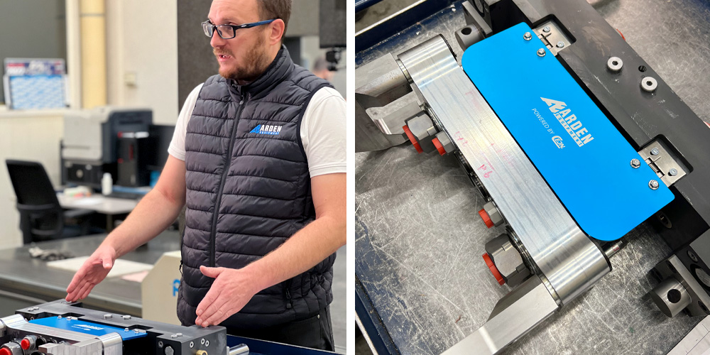 Christophe Bouillard, ingegnere progettista di Arden Equipment, insieme all'AIO350, una delle dimensioni sviluppate da Arden e CEJN.