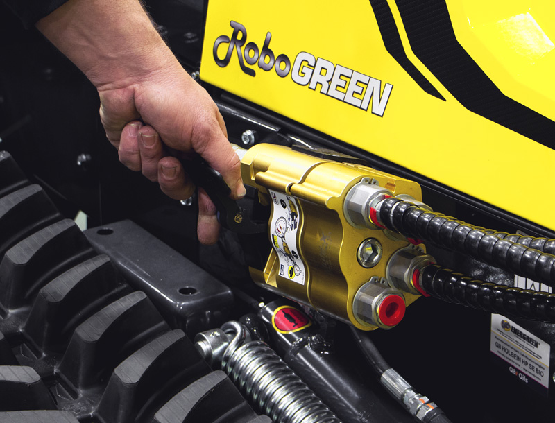 Il parco macchine Energreen si identifica in tre divisioni: Robo, ILF semovente ed Attrezzature professionali. La divisione Robo, di cui RoboGREEN fa parte, comprende cinque macchine portattrezzi multifunzione radiocomandate da pendenza. RoboGREEN è progettato per lavorare nelle condizioni più difficili ed è in grado di utilizzare più di 25 diversi tipi di apparecchiature. Per questa macchina, Energreen era alla ricerca di una soluzione per rendere l'operazione di connessione e sconnessione dei collegamenti idraulici più semplice e sicura, senza l'ausilio di utensili supplementari.