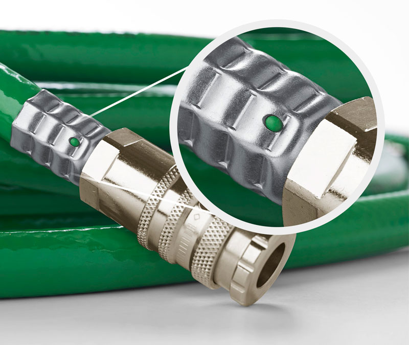 Per darvi la massima tranquillità e garantirvi un assemblaggio corretto è stato previsto un piccolo foro di ispezione nella ghiera. Durante il controllo qualità è possibile verificare ed assicurarsi facilmente che in fase di graffatura il tubo sia stato correttamente posizionato. In qualisiasi momento, anche quando il tubo è stato sottoposto a carichi pesanti, con un semplice sguardo al foro di ispezione è possibile assicurarsi che il tubo sia ancora in una posizione di lavoro corretta.