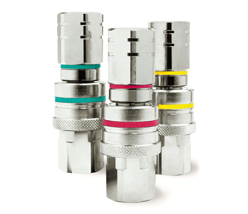 Grazie ad anelli colorati sulla ghiera il potenziale il rischio di una connessione incrociata e dunque il rischio di mischiare fluidi diversi, si riduce. Il codice colore è disponibile come opzione per la Serie Non-Drip. E' inoltre disponibile una codifica chiave che rende fisicamente impossibile collegare un innesto femmina ad uno maschio che non sia il suo corrispondente. Questa caratteristica è particolarmente utile nelle applicazioni in cui sono presenti linee e fluidi differenti.