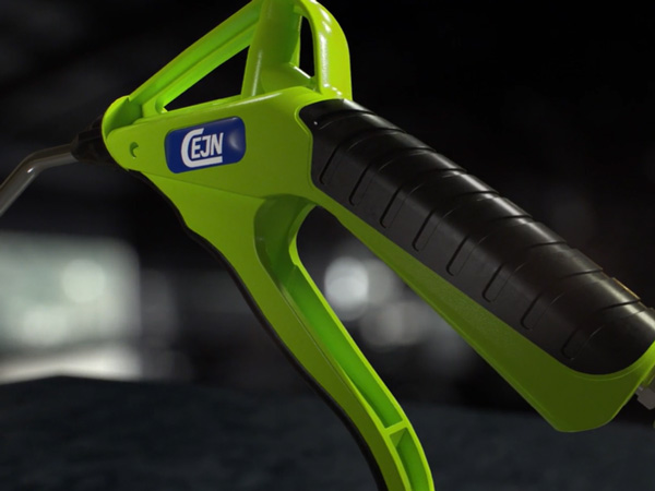 L'impugnatura morbida, realizzata in stampa ad iniezione 2K, è integrata con il corpo della pistola di soffiaggio per fornire una sensazione di robustezza e allo stesso tempo dare all'utente una presa salda. Gran parte del corpo e il grilletto della pistola di soffiaggio sono ricoperte da un'impugnatura morbida per un maggiore confort di utilizzo da parte degli opratori sia mancini che destrorsi.