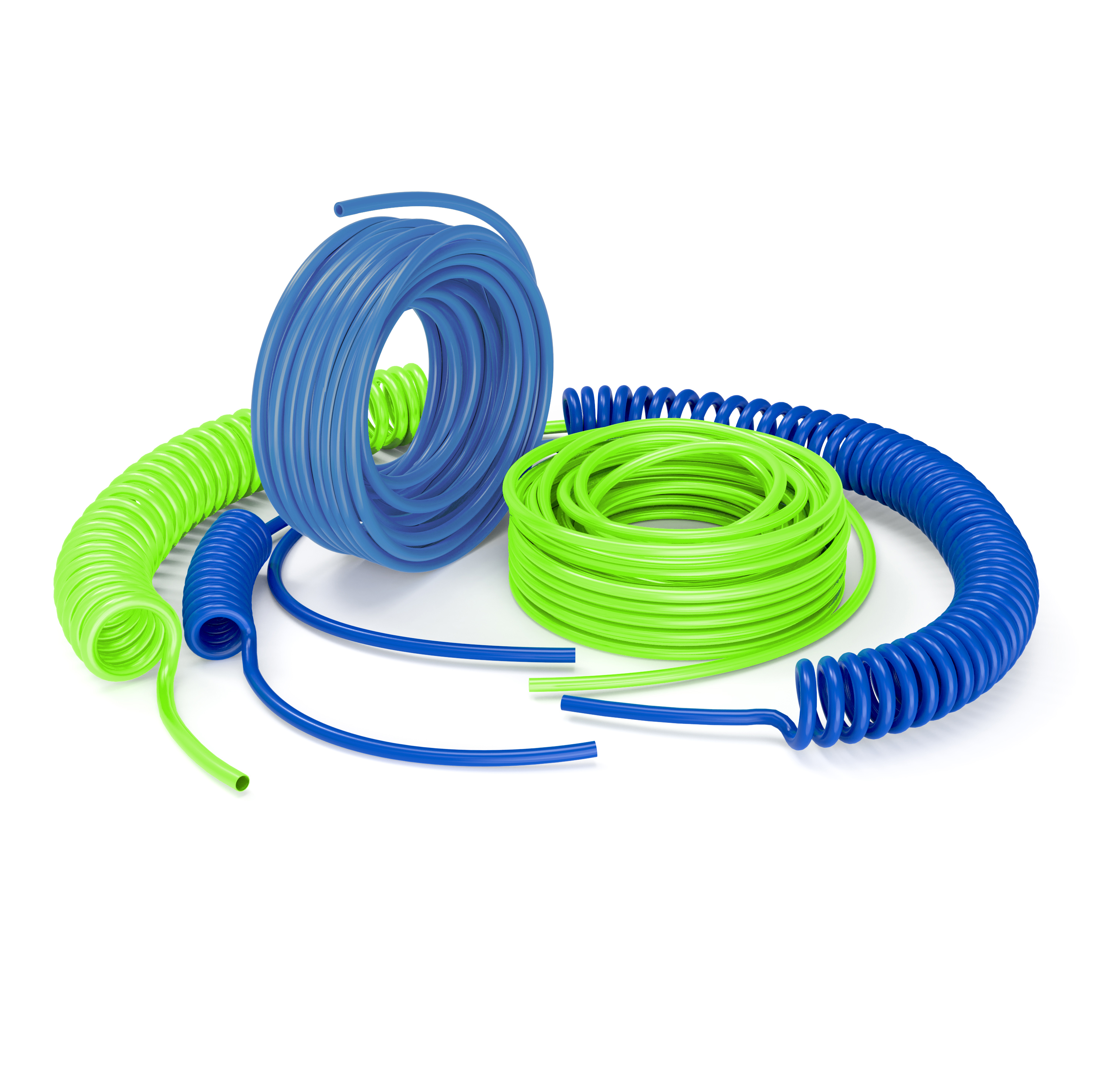Tubo PUR lineare intrecciato/a spirale e lineare non intrecciato pr aria compressa