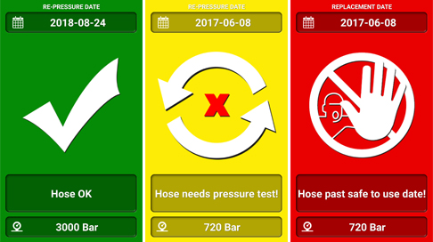 W ramach wszystkich opisanych stanów wskazywane jest ciśnienie robocze w wężu, tak aby nie było wątpliwości. Aplikacja pozwala szybciej podejmować jasne decyzje w zakresie bezpieczeństwa i umożliwia stały dostęp do najnowszych informacji. Wszystko, czego potrzeba, to nasz zestaw węża hydraulicznego ultrawysokiego ciśnienia z etykietą CiS, telefon komórkowy i/lub oprogramowanie.