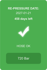 Status indicators show instantly whether a hose is safe to use, requires inspection, or should be recycled.