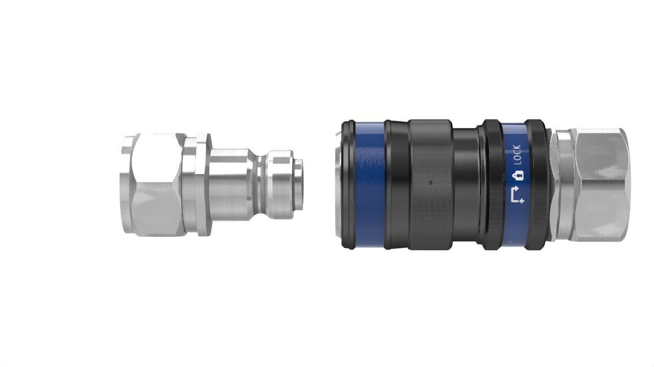 A quick and smooth locking ring gives extended security to your connection. Screw locks are sometimes considered by users to be time-consuming and left unscrewed. With the safety lock on the ultra high-pressure quick couplings, unintentional disconnection is practically eliminated, just a quick twist of the bayonet lock and your hydraulic coupling is secured.