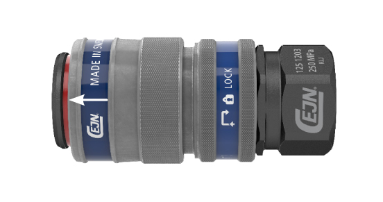 The CEJN ultra high-pressure quick connect couplings have an “Alert ring” installed on the front part that clearly indicates if the connection is safe. If the red ring is still visible, the connection is not complete and when pressurizing the system, the nipple may suddenly shoot out of the coupling under pressure.